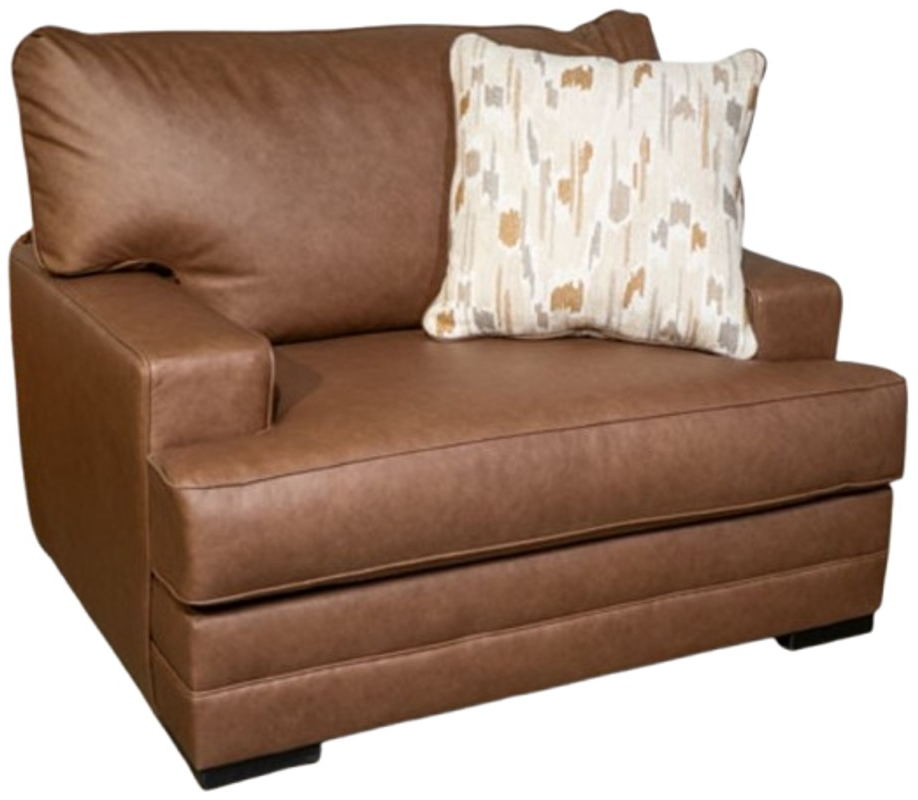 Featuring a trending caramel faux leather with decorative accent pillows