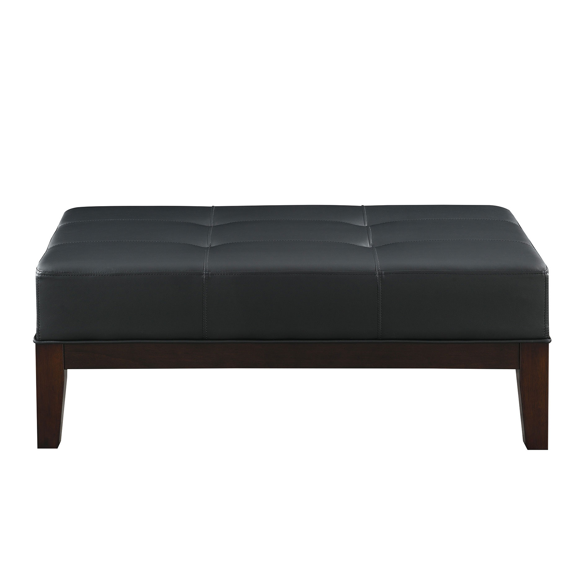 Experience the pleasure of beautifully done faux leather with the Carmichael ottoman. Button-tufted top and designer stitching add a rich element. Generous scale provides room for one and all. Firmly cushioned design makes it a practical coffee table alternative, when topped with a serving tray.