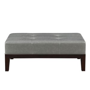 Experience the pleasure of beautifully done faux leather with the Carmichael ottoman. Button-tufted top and designer stitching add a rich element. Generous scale provides room for one and all. Firmly cushioned design makes it a practical coffee table alternative, when topped with a serving tray.
