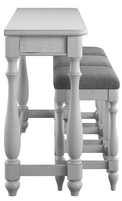Emerald Home New Haven 4-Piece Oyster Shell Sofa Table Set brings relaxed charm and everyday function to your living space. The sofa table offers drawers for storage, while three upholstered stools tuck neatly underneath. The light oyster shell finish creates an inviting look for casual gatherings and practical use home.Read More