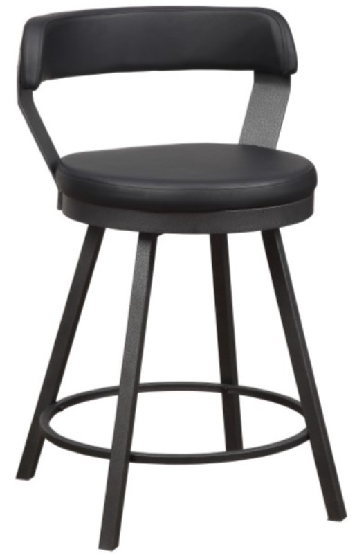 Perfectly styled for your casual dining space is the Appert collection. This 24-inch counter height chair offering features a dark gray metal base that serves to support the black faux leather round swivel seat.Read More