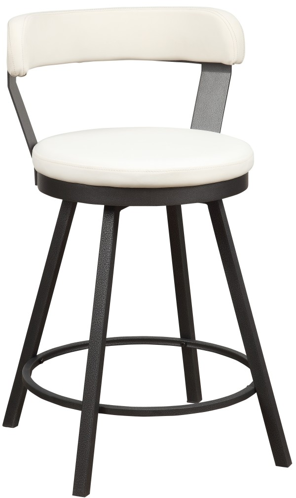 Perfectly styled for your casual dining space is the Appert Collection. This 24-inch counter height chair offering features a dark gray metal base that serves to support the white faux leather round swivel seat.Read More