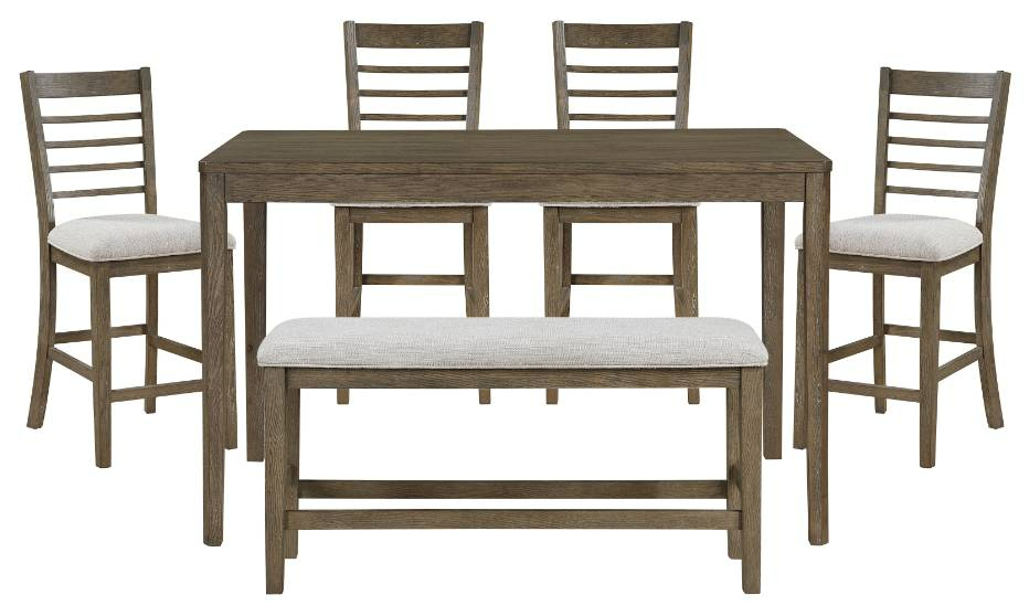 Set Includes: Counter height table, 4 counter height chairs, and 1 counter height bench