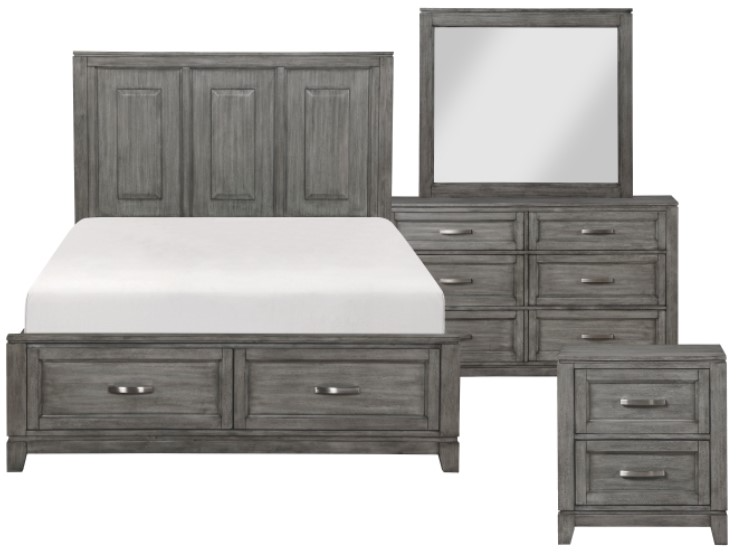 Set Includes Queen Bed, Nightstand, Dresser and Mirror