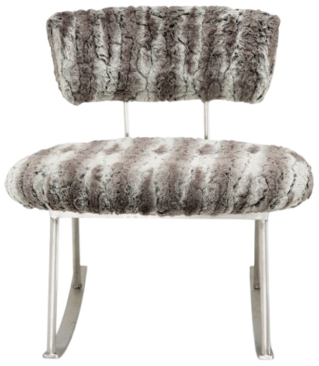 The Michael Amini® A La Carte Pebble Beach Rocker Chair is a stylish and comfortable addition to any living space. Featuring a brushed silver metal frame and plush faux-fur upholstery, it offers both durability and luxury. The chair's unique rocking design and cushioned seat and back provide exceptional comfort.Read More