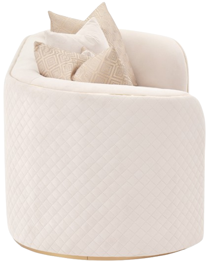 Discover intimate luxury with the Ariana loveseat. Furnished with five exquisite accent pillows - gold jacquard, velvety beige plushness, and an oblong centerpiece - it offers a more personal seating experience, perfect for quiet evenings or heartfelt conversations.Read More