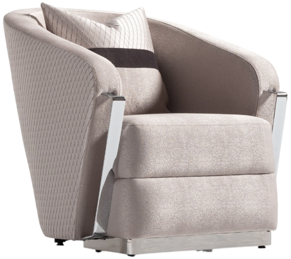 Allow me to introduce you to our stunning accent chair. The majestic silver-adorned front arms, sensuously sloping inwards, are complemented by the dazzling jacquard fabric on the back. The included decorative pillow infuses an air of luxury relaxation, ensuring you’ll never want to leave its embrace.Read More
