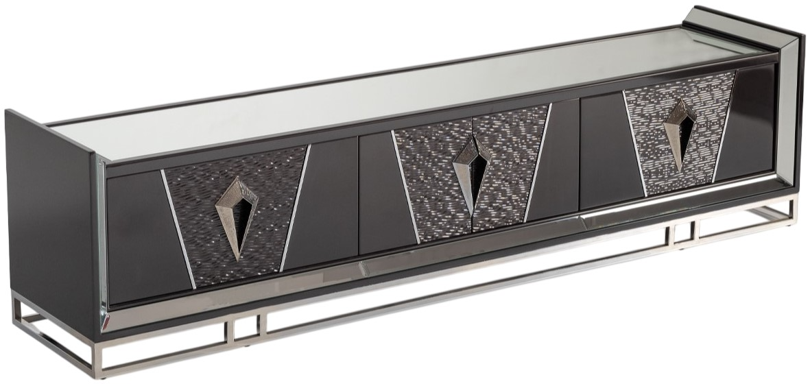 A captivating media cabinet that beckons you into a world of sheer luxury. With its meticulously crafted design, mirrored accents, and sleek geometric handles, this masterpiece promises to enrapture your senses and become the heart of your elegant entertainment space.Read More