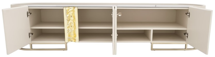 A strong design statement, this vibrantly modern piece becomes a focal point in any room with multiple storage opportunities. The ribbed lines with the slender brass-finished base hardware provide the perfect façade, while the detailed enclave with brass detail ads interest and makes this piece completely unique.Read More