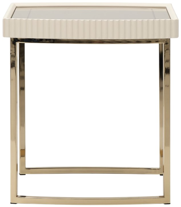 Sleek with a structured framework constructed in brass and accented with a contrasting tabletop. This piece is detailed with a ribbed texture detail on the sides of the tabletop to perfectly encompass a unique radiance.Read More