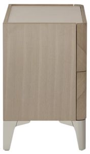 The Michael Amini® Penthouse Ash Gray Nightstand is a sophisticated addition to any bedroom. Crafted from poplar wood and dyed elm veneer, it features an ash gray finish complemented by platinum accents. The nightstand includes two velvet-lined drawers with soft-closing glides, adorned with brushed stainless steel pulls in a geometric designRead More