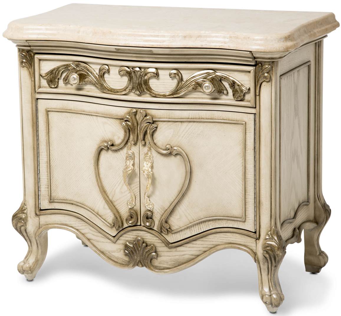 French provincial is the heart and soul of the magnificent Platine de Royale collection. The distinctive elements of design include graceful carvings, antiqued mirror glass, and exquisite custom hardware. Swarovski Crystal accents adorn signature items like the bed and mirrors. It is rich and timeless, reminiscent perhaps of furniture handed down through the generations, yet stylishly interpreted for today's homes.Read More