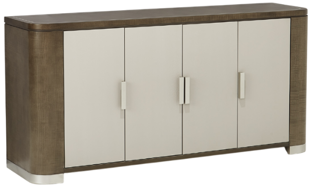 Sideboard top features a painted platinum trim