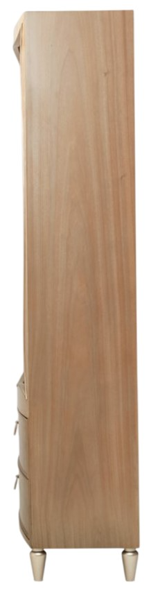 Trim, hoop drawer pulls, and foot accents are finished in Chardonnay