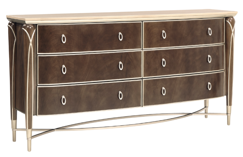 The Villa Cherie hazelnut dresser exudes romantic sophistication with a warm hazelnut finish and graceful curves. Designed for luxurious storage, it features sculpted drawer fronts, champagne-gold hardware, and elegant details that elevate any classic or transitional bedroom.Read More