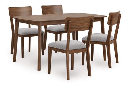 The Signature Design by Ashley® Tameride Brown 5-Piece Dining Set offers casual elegance with a rectangular wood table and four matching chairs. Upholstered seats provide comfort, while the sturdy wood frames ensure lasting durability. Its warm brown finish and clean lines make it a versatile fit for any dining space.Read More